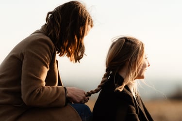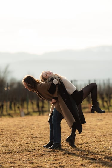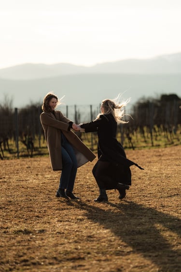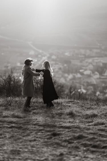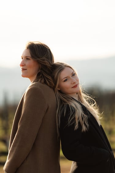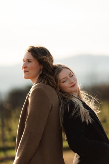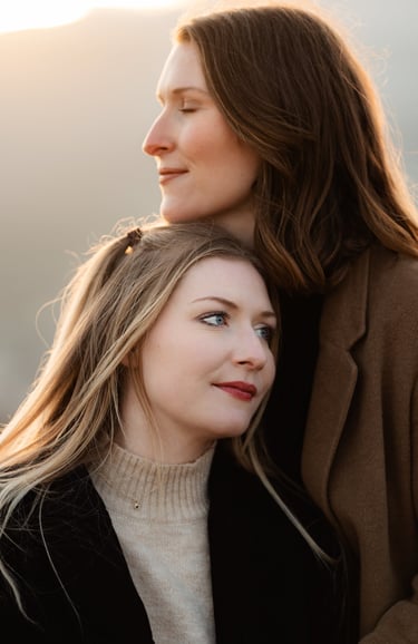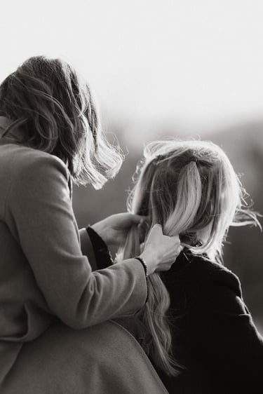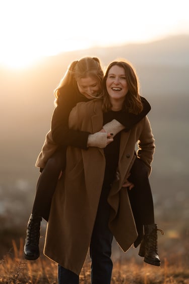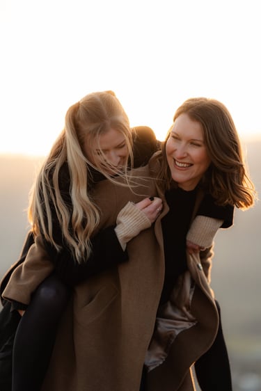 Photographier une séance entre soeurs, c'est capturer bien plus que des images : ce sont des regards complices, des gestes familiers, des rires spontanés, un retour en enfance assuré. C'est aussi un moment pour être soi, se sentir belle, soutenue et aimée.